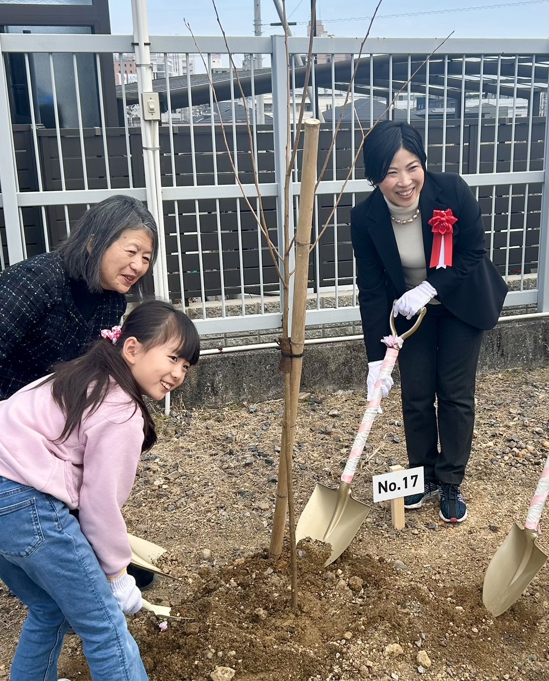 今回植樹した桜は「神代曙(じんだいあけぼの)」という品種。ソメイヨシノより少し濃い色で、開花時期はソメイヨシノより少し早いようです。病気に強いのも特徴の一つのよう。