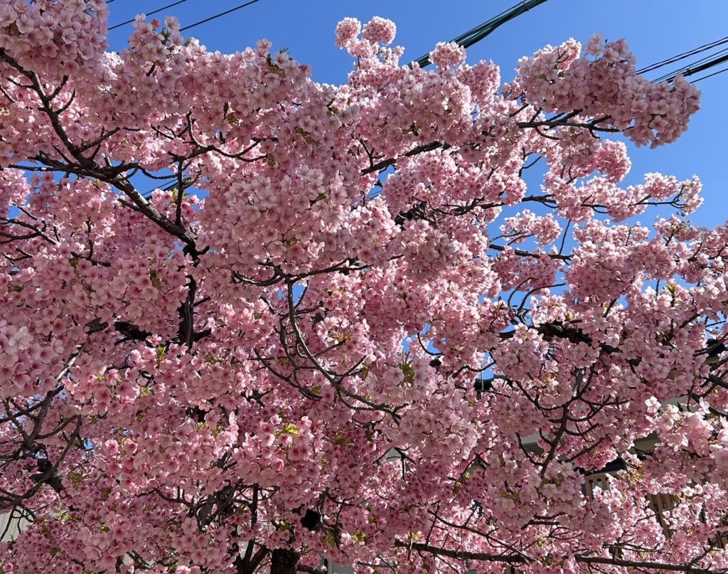 桜は寺町(三八市開催)の河津桜。満開、綺麗!