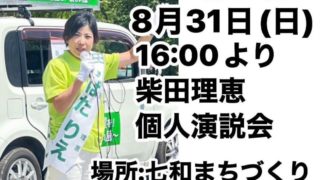 本日、演説会を行います!8月31日(日)16時より七和まちづくり拠点施設